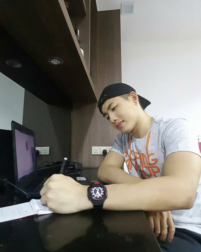 目前就读KDU大学修读物流管理系 ,平时喜欢打篮球,也热爱健身。他有著178公分高挑的身材、胸腹肌明显的健美身材,一脸俊俏的脸孔、韩式单眼皮、清新迷人的气质加上清爽的打扮, 强大的气场, 让他脱颖而出成为大马新一代平面广告“小鲜肉” 。