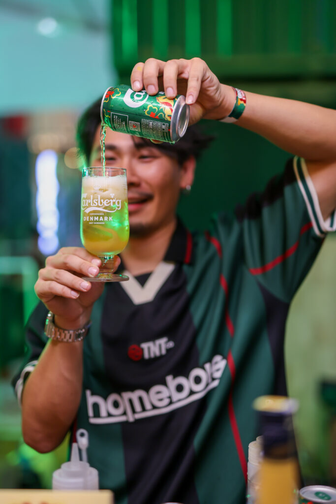 再往里走,精彩继续绽放。CarlsBar 也有鸡尾酒工作坊,让来宾亲手调制赤马嘉士伯特调。
