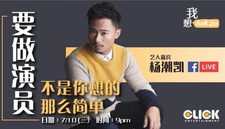 由 Click Entertainment负责的《我想Talk 2 U》线上分享会 , Moses Media 盛情配合, 找来了人气急升的香港艺人“男神”杨潮凯, 即将在10月份起, 连续3个月登上Click Entertainment 平台举办的《我想Talk 2 U》的线上分享会, 透过网络分享他的拍摄写真, 演员生涯等等话题 !