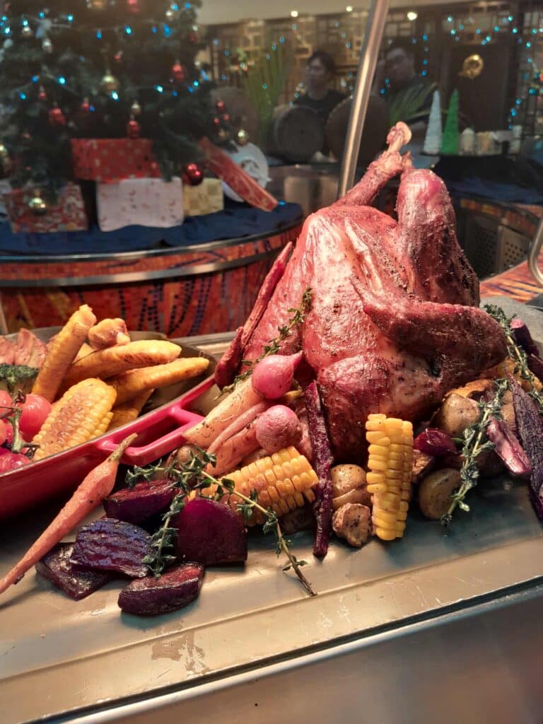 The hotel’s culinary team showcases a symphony of flavours: Roasted Tom Turkey with Chestnuts & Apple Stuffing, Beef Wellington baked with Mushroom and Truffle Jus, and Oven-Roasted Lamb Leg with Mediterranean Herbs, complemented by handcrafted sweets such as Classic Stollen, Yule Log Cakes, and Gingerbread Goodies.