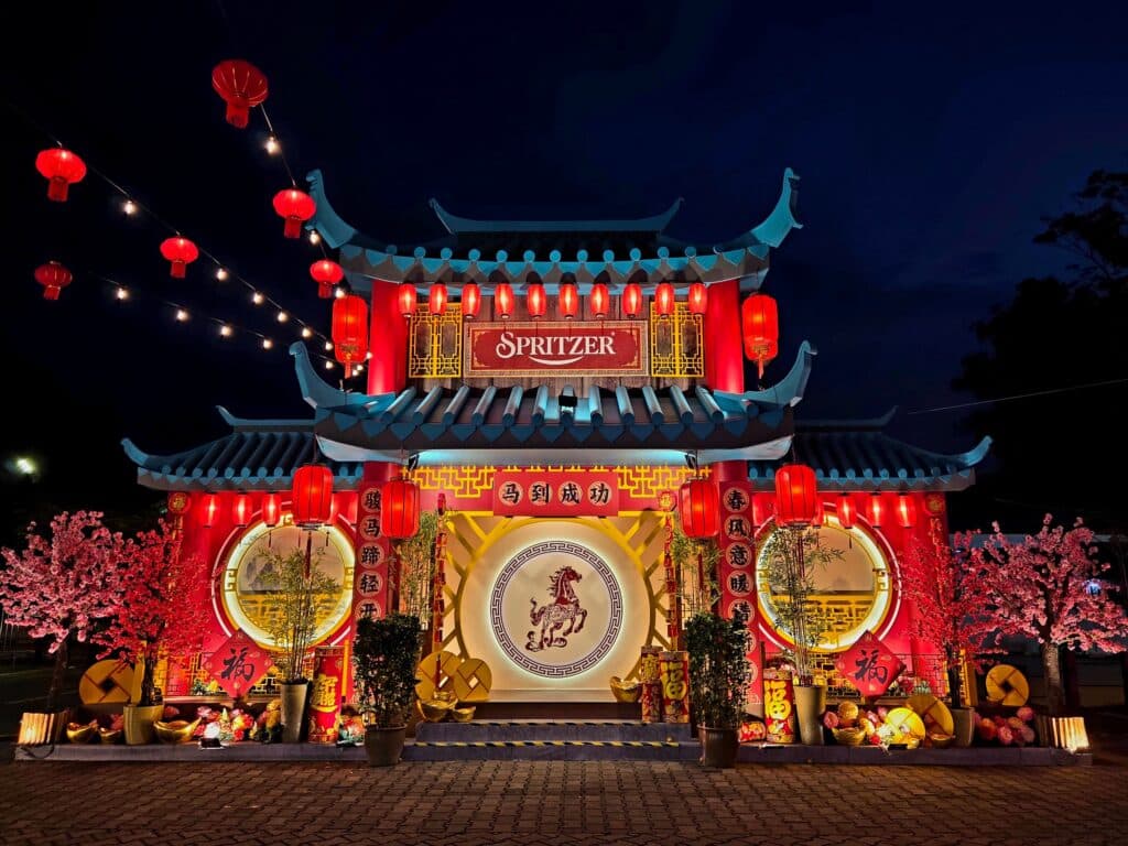 Spritzer EcoPark 的新春布置力求呈现农历新年与生肖精神的内涵,鼓励访客以更积极、勇敢且焕然一新的心态迎向未来。园区装饰经过精心设计,将传统新春元素与自然绿意巧妙融合。喜庆拱门、亭阁风格装置、流光溢彩的红灯笼、点缀其间的梅花与吉祥符号,再加上马与生肖主题装饰及互动展示区,共同营造出一个充满年味、适合拍照打卡的节庆景观,让家人和朋友在欢庆氛围中留下难忘的新春回忆。