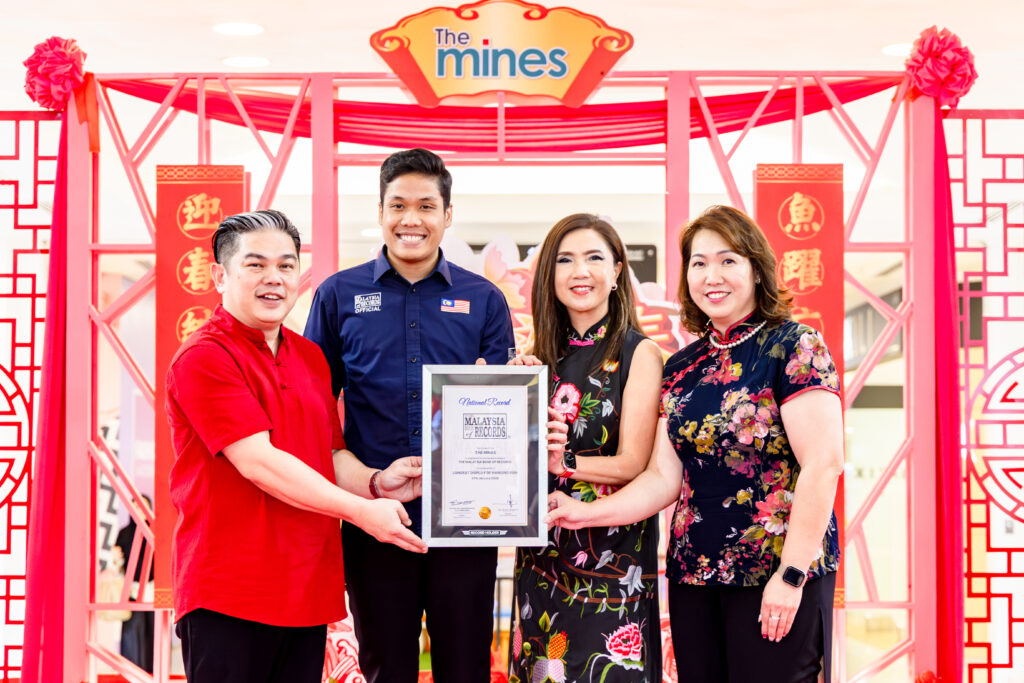 The Mines 总经理 Alicia Yuen 表示:“我们非常高兴以一项破纪录的展示来欢庆农历新年,这充分体现了 The Mines 的精神与独特性——作为马来西亚唯一一座拥有威尼斯风格室内运河的购物商场。长达318尺的悬挂锦鱼不仅象征着富足与繁荣,也展现了我们致力于为顾客打造有意义、难忘体验的承诺。